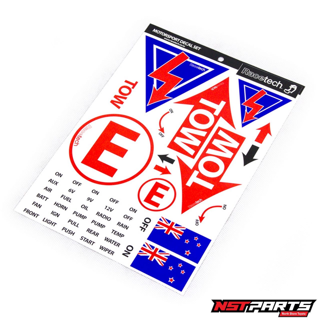 Racetech motorsport sticker set meets Motorsport NZ and FIA requirements.